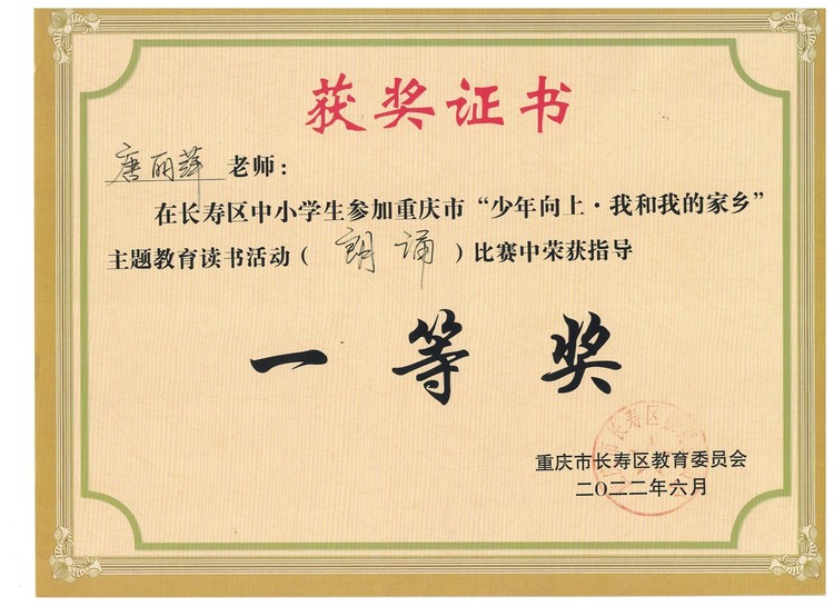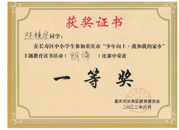 重慶市首屆“少年向上·我和我的家鄉(xiāng)”主題教育讀書(shū)活動(dòng) 長(zhǎng)壽區(qū)小學(xué)組朗誦展示 一等獎(jiǎng)
