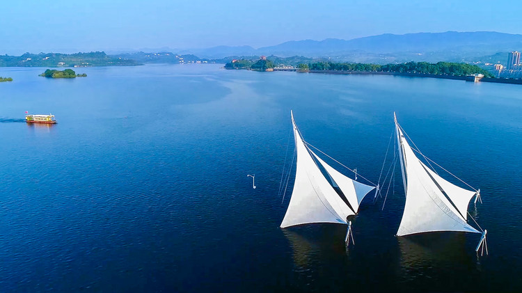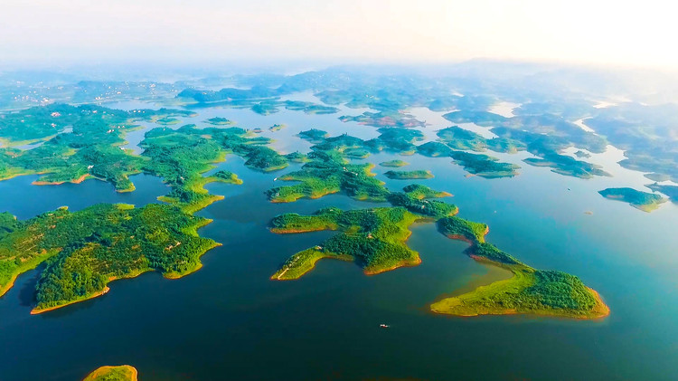 散布在湖中有兩百多個(gè)小島,航拍圖中,有人發(fā)現(xiàn),其中有幾十個(gè)小島散布湖中,居然在湖面上神奇地刻出一個(gè)巨大的繁體字,陽(yáng)刻讀為壽,陰刻讀為長(zhǎng)。這是巧合,還是天意?