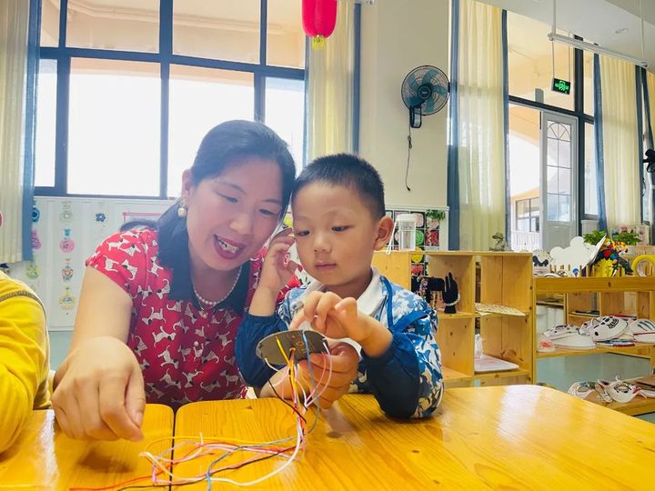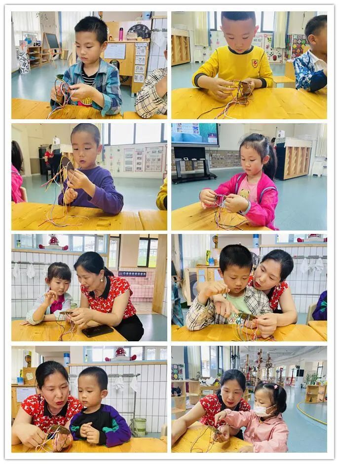 幼兒園家長助教進課堂,許淵博小朋友的媽媽帶著孩子們一起做五彩繩,寓意著祛除災害,迎福納吉。