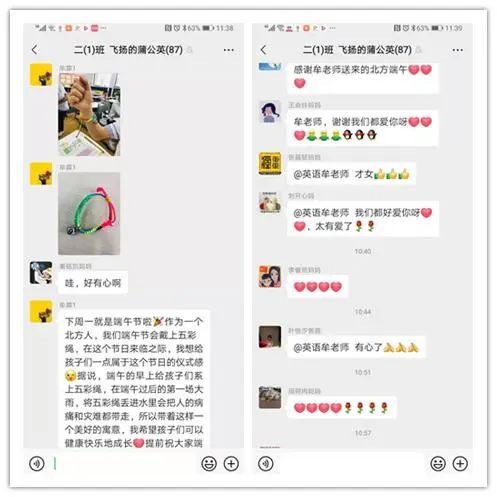 心中盛滿愛的Kiki老師給孩子們帶來五彩繩,為孩子們系上五彩繩祈福納吉。牟霖老師給孩子們帶來了北方端午特別寵愛。