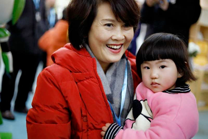 在幼兒園,代表們駐足在幾種不同類型的水籠頭前,認真聽取老師的講解。并有代表上前去親自體驗各種水籠頭的妙用。更有代表為幼兒園衛(wèi)生間的精致陳設(shè)、優(yōu)美的色彩和人性化的設(shè)計不停地稱贊。代表們?yōu)檫h恒佳以匠心做教育,極度重視細節(jié),追求完美、追求卓越的辦學(xué)精神紛紛點贊。孩子們看到來訪的客人,高興地向客人們問好,一個個興奮地沖過來求抱抱。代表們?yōu)楹⒆觽兊募冋妗㈥柟馑腥?,一個個彎下腰來、蹲下來與孩子們擁抱或把孩子高高舉起,幼兒園中歡聲笑聲一片。離開時,孩子們依依不舍地向代表們用地道的英語道別!