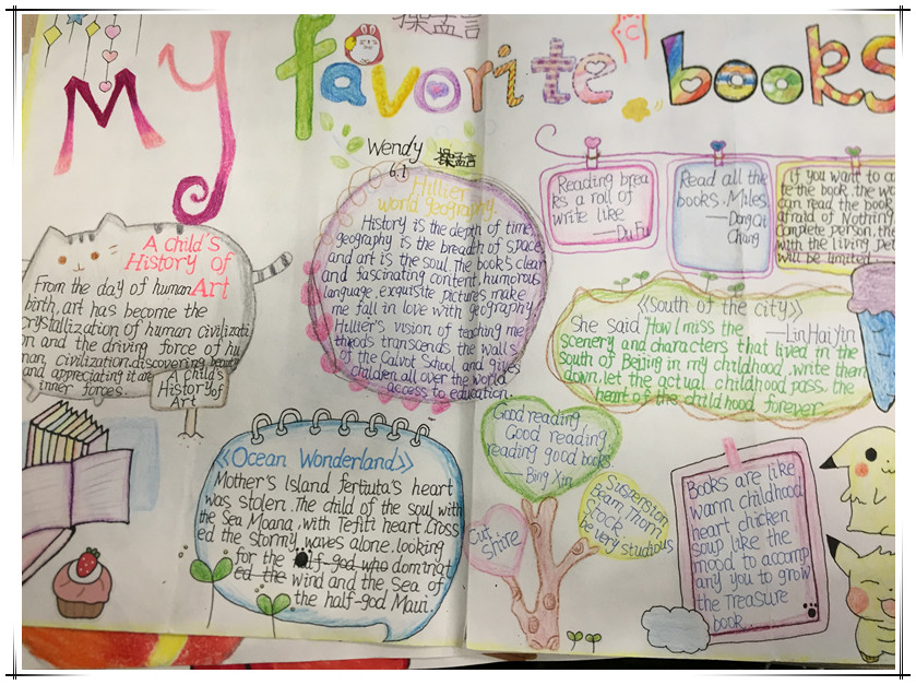 小學部在三—六年級開設了每周一節(jié)的《Good English 典范英語》英語閱讀課,我們在英語故事的海洋中遨游。正如“有一千個讀者就有一千個哈姆雷特”,即使讀的故事文章一樣,我們的閱讀作業(yè)都是那么的個性分明。我們一起來暢游一下 “悅”讀世界吧!思維導圖和個性海報你是不是超級喜歡呢?